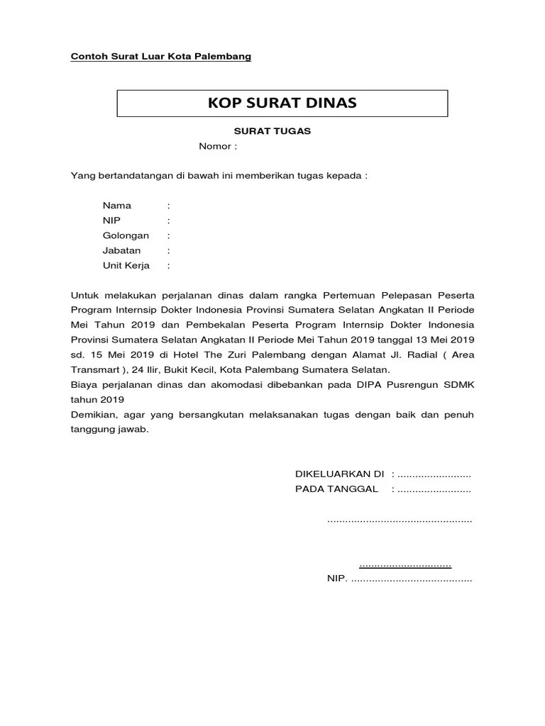 Tujuan utama dari pembuatan sppd ini adalah sebagai bukti dalam melakukan tugas yang dilakukan di luar kota. 14 contoh surat dinas keluar . Contoh surat tugas luar kota perusahaan contoh surat. Sawahlunto, 5 juni 2015 kepaladinas kesehatan dan sosial kotasawahlunto dr. Contoh surat permohonan mutasi kerja contoh surat.