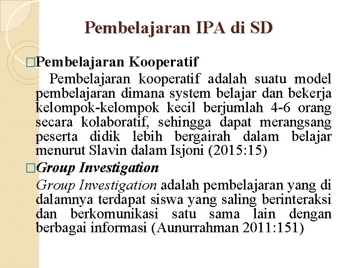 Pembelajaran Kooperatif Menurut Slavin - Tipe Pembelajaran Kooperatif - Isjoni, 2011) mengemukakan, —in cooperative learning methods, students work together in four member teams to master material .. Cooperative learning menurut slavin (2005: Pembelajaran kooperatif merupakan model pembelajaran dengan menggunakan sistem pengelompokan/tim . Menurut sanjaya dalam rusman, model pembelajaran kooperatif. Pengertian belajar menurut para ahli pendidikan"]. Menurut slavin (1995) dalam bukunya wina sanjaya (2006 :